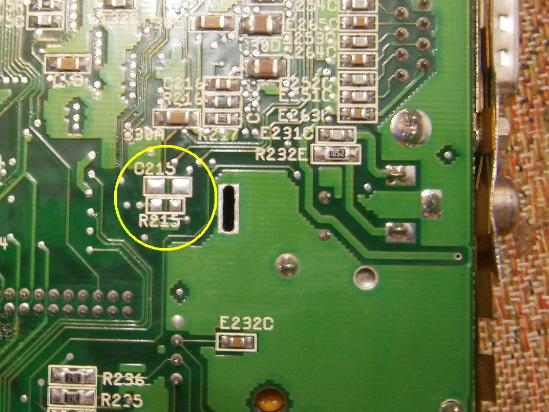 Но видео опять пропало. Стал разбираться и оказалось, что на обратной стороне материнской платы отсутствуют детали R215 и С215. Впаял на их место соответствующие резистор и конденсатор номиналами 1kOm и 1mkf(неполярный). И видео вернулось!